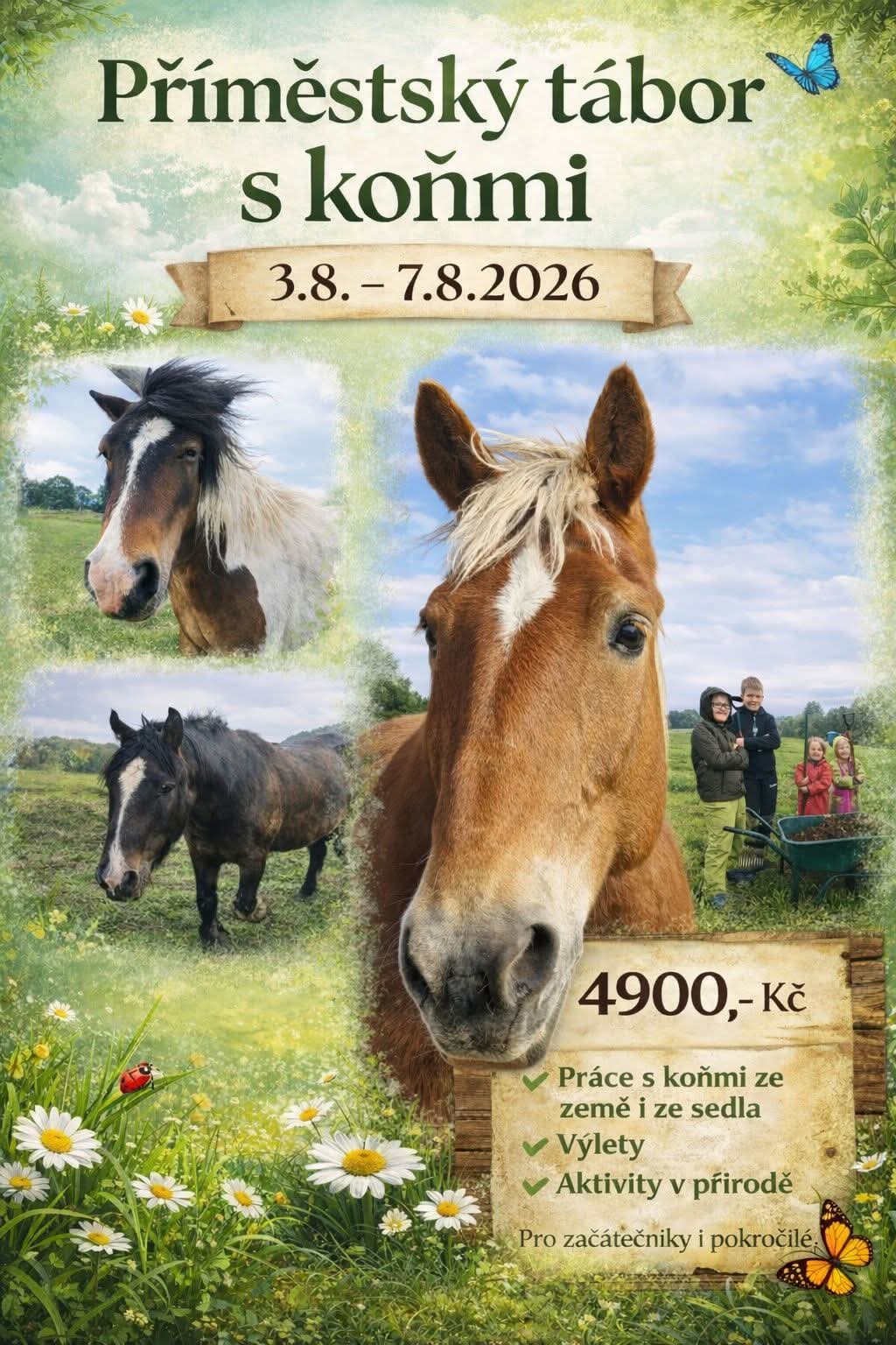 🌞 Léto s koňmi na Dlouhé Louce! 🐴Příměstský tábor plný dobrodružství, přátelství a přírody čeká na vaše děti.✨ Co je čeká:🐴 péče o koně a základy jízdy🌳 hry v přírodě a tvořivé dílny🤝 nová kamarádství a týmová spolupráce🍎 zdravé svačiny a obědy📍 Místo: Dlouhá Louka, Krušné hory👧 Pro děti: 7-14let💰 Cena: 4900kč📞 Přihlášky a info: +420 608...
